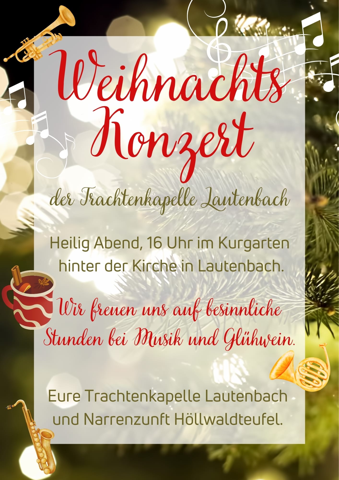 Wir wünschen Euch "Frohe und gesegnete Weihnachten". Eure Trachtenkapelle Lautenbach.